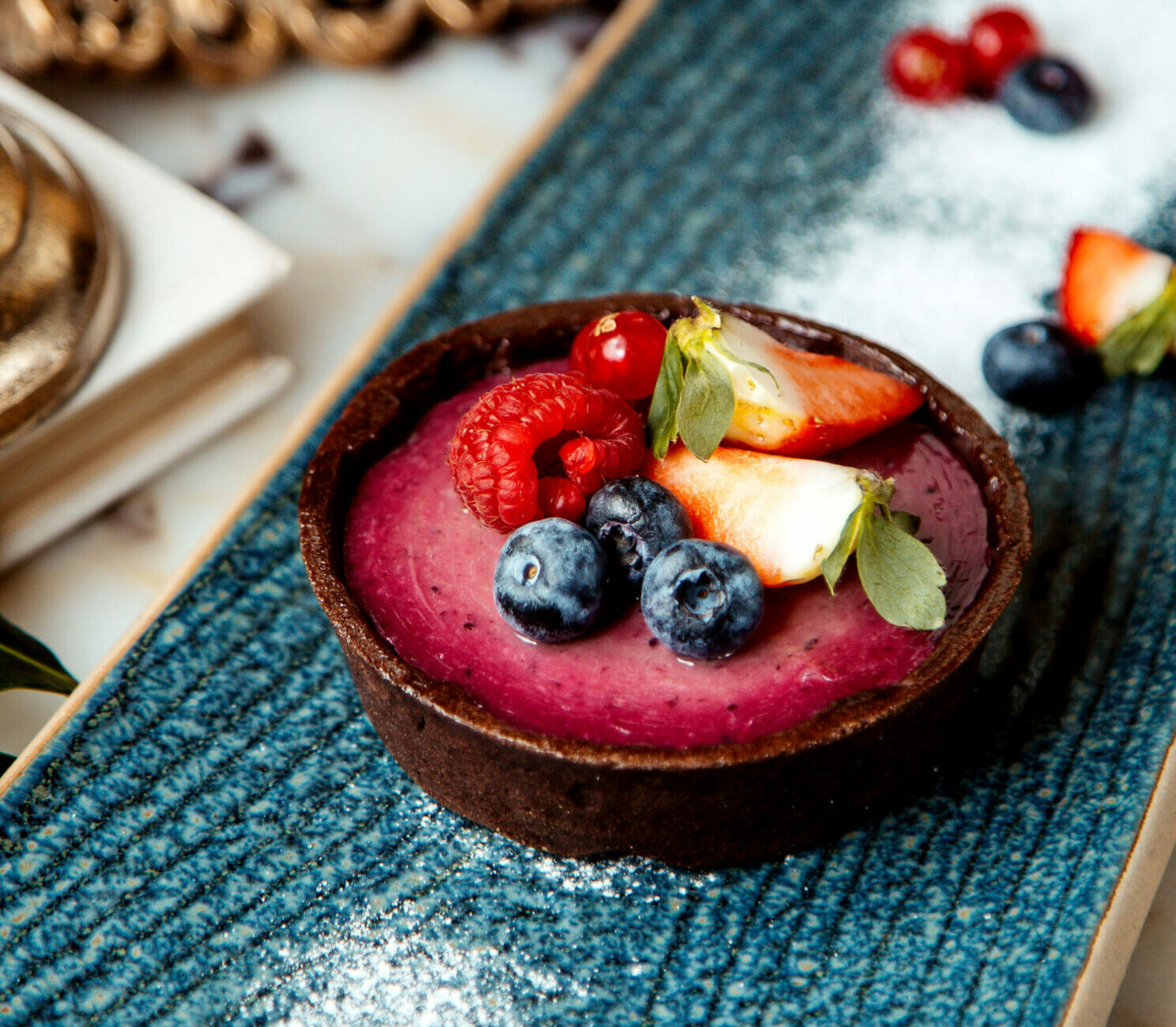 7. Wylać masę do keksówki, wyłożyć na wierzch gęste maliny.