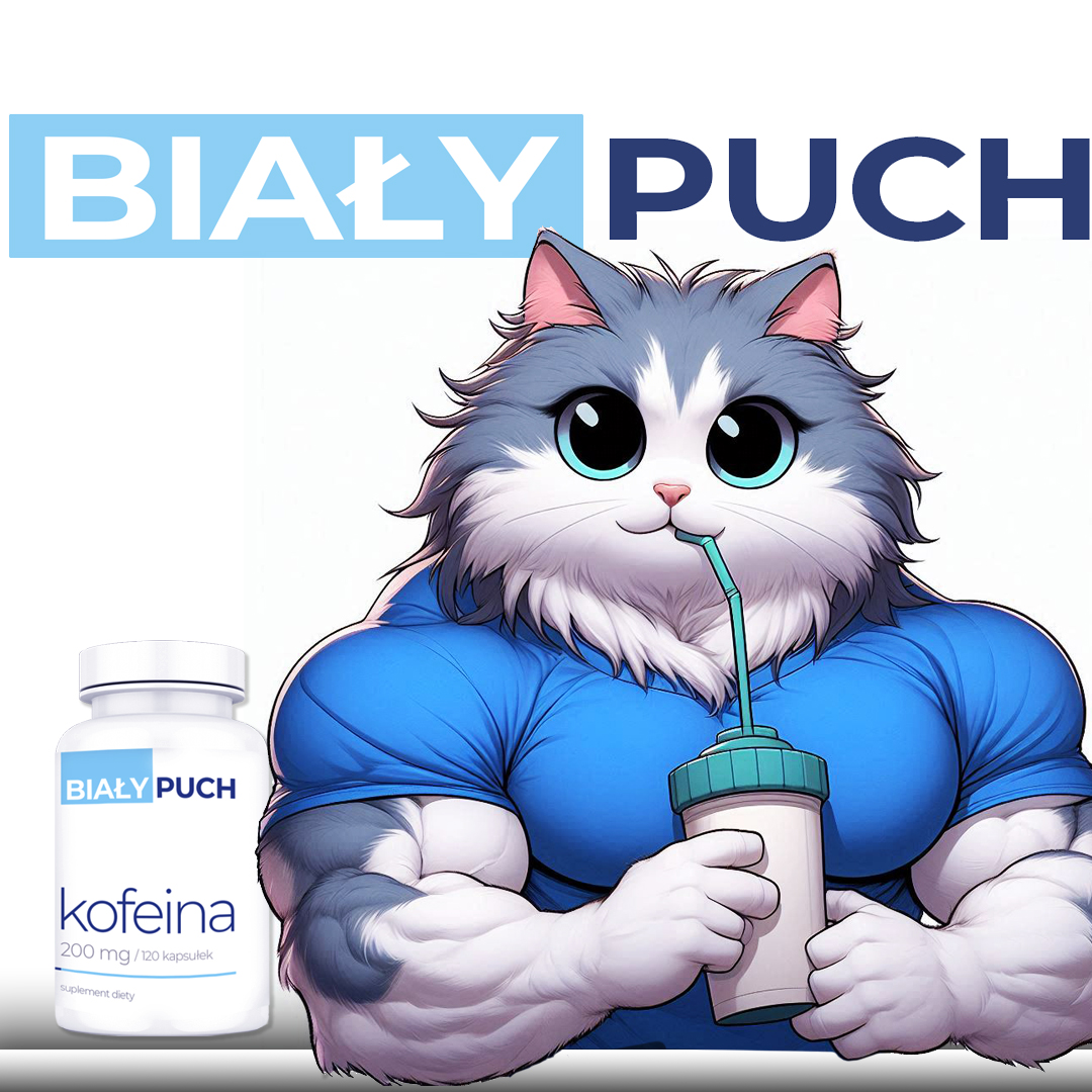Biały Puch Kofeina to suplement diety zawierający najczystszą formę kofeiny bezwodnej. Zaliczana jest ona do alkaloidów purynowych. Ma postać niewielkich kryształków o białej barwie. Jest bardzo dobrze rozpuszczalna w wodzie. Naturalnie występuje w ziarnach kawy, kakaowca, guaranie, herbacie, ostrokrzewie paragwajskim (yerba mate) i wielu innych roślinach. W zależności od źródła pochodzenia przyjmuje ona inną nazwę (kofeina z kawy, guaranina z guarany, teina z herbaty czy mateina z ostrokrzewu paragwajskiego).