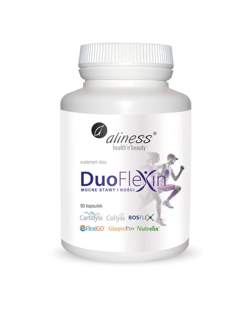 Duoflexin® posiada dwa rodzaje kolagenu pochodzenia rybiego – występujący naturalnie w ścięgnach i kościach kolagen typu I Collyss™ oraz kompleks kolagenowy CARTIDYSS™, zawierający w swoim składzie kolagen typu II – naturalnie występujący w chrząstce stawowej, a także naturalną chondroitynę i glukozaminę, wzmocnione dodatkową porcją niskocząsteczkowego kwasu hialuronowego o wysokiej przyswajalności oraz proteinami ze śluzu ślimaka. Ponadto kompozycję wzbogacono o synergistycznie działające składniki: