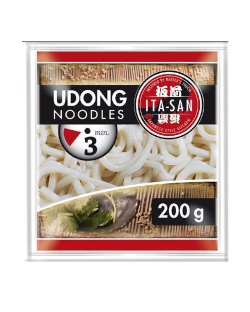 Makaron Udon marki ITA-SAN jest makaronem wstępnie obgotowanym, a co za tym idzie bardzo prosty w przygotowaniu – wystarczy włożyć go do wrzącej wody, gotować ok. 3 minuty i gotowe!
