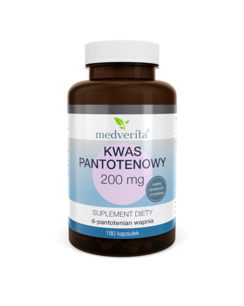 Medverita Kwas Pantotenowy to suplement zawierający w swoim składzie niezbędny i jeden z najważniejszych związków w naszym organizmie „kwas pantotenowy” czyli witaminę B5.