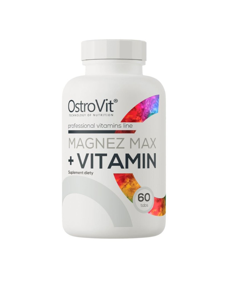 OstroVit Magnez Max + Vitamin to unikatowy kompleks witaminowo-minerałowy składający się z wysoce biodostępnych form związków magnezu oraz 10 witamin i składników mineralnych. Uzupełnianie niedoborów ww. minerałów jest szczególnie ważne w przypadku osób uprawiających sport, prowadzących aktywny tryb życia, ale również dla osób ceniących sobie dobre samopoczucie oraz dbających o homeostazę swojego organizmu.