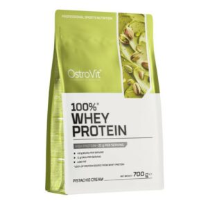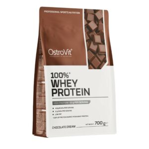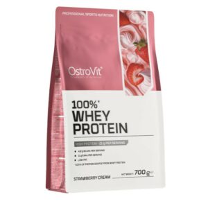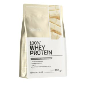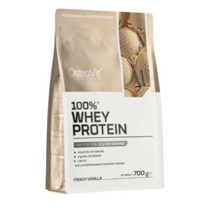 OstroVit 100% Whey Protein to suplement diety, który stanowi źródło koncentratu białka serwatki, zawierającego aż 70% wysokiej jakości protein. To preparat, który dostarcza do organizmu aminokwasy rozgałęzione BCAA, a także niezbędne aminokwasy egzogenne EAA. To niskotłuszczowy produkt, dostępny w postaci proszku w różnych wariantach smakowych, który został stworzony z myślą o sportowcach i osobach, którym zależy na uzupełnieniu codziennej diety w cenny makroskładnik.