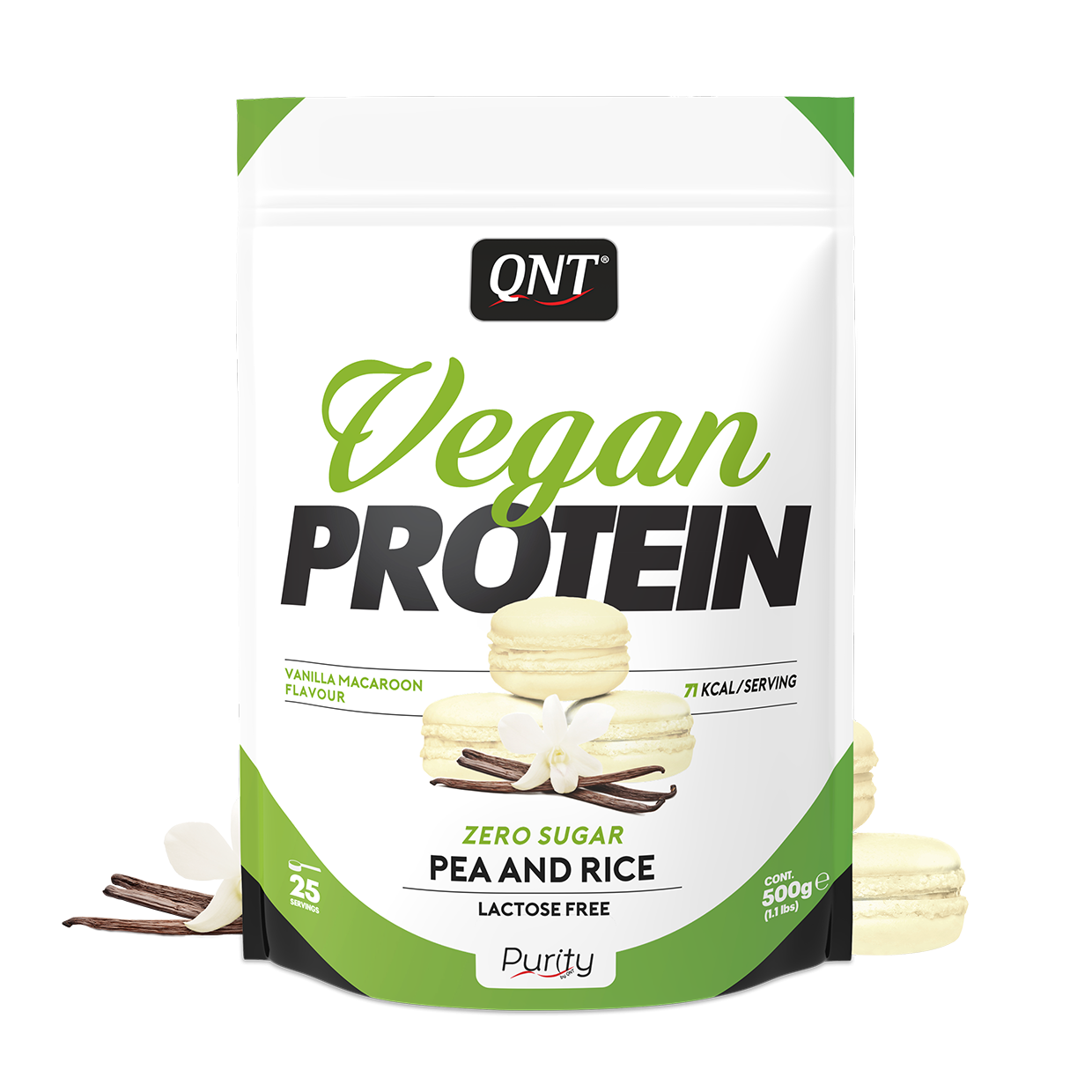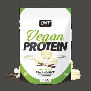 QNT Vegan Protein to nowa odżywka proteinowa zawierająca w swym składnie unikalną kompozycję izolatu białka z zielonego groszku  i protein ryżowych stanowiących jego wspaniałe uzupełnienie