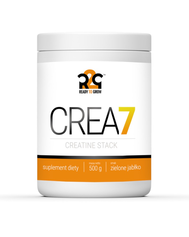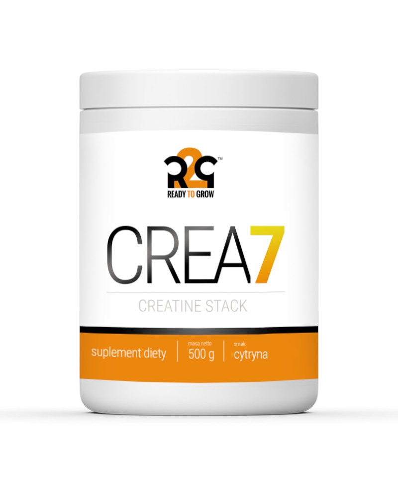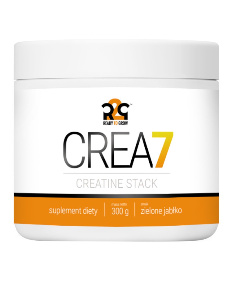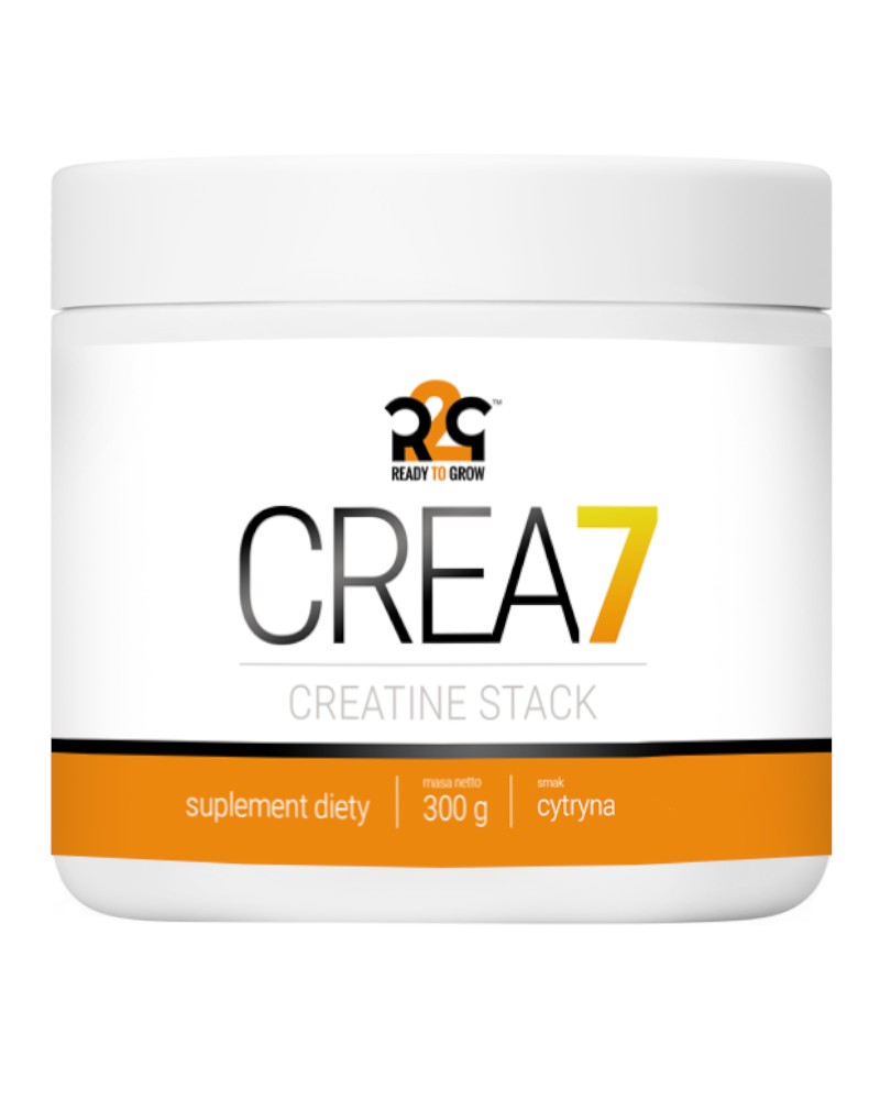 R2G CREA 7 to suplement diety w proszku w postaci staka kreatynowego, oparty na siedmiu najnowocześniejszych formach kreatyny oraz substancjach wspomagających pracę mięśni w trakcie ćwiczeń. Kreatyna zwiększa wydolność fizyczną w przypadku następujących po sobie krótkich, bardzo intensywnych ćwiczeń fizycznych. Korzystne działanie następuje w przypadku spożywania 3 g kreatyny dziennie. Produkt przeznaczony dla osób dorosłych obciążonych wzmożonym wysiłkiem fizycznym.
