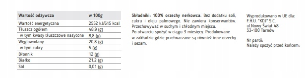 | Nazwa handlowa | Krem z orzechów nerkowca |