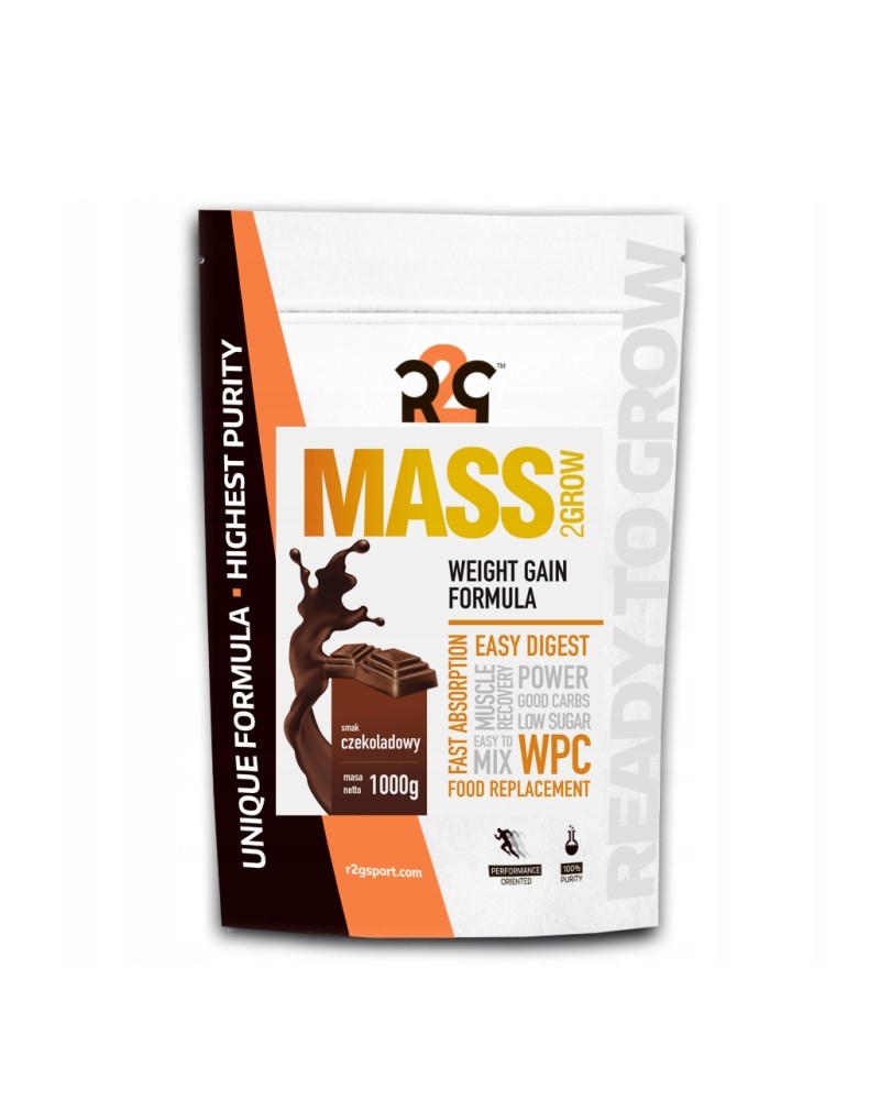 MASS 2 GROW firmy R2G to najwyższej jakości odżywka węglowodanowo-białkowa o unikalnym, perfekcyjnie zbilansowanym i kompletnym składzie. Komponent białkowy odżywki stanowi łatwoprzyswajalny i szybkowchłanialny koncentrat białka serwatki (WPC). Dzięki użyciu najwyższej jakości składnika, każda komórka mięśniowa otrzymuje niezbędny do regeneracji i wzrostu zastrzyk kluczowych w tym procesie aminokwasów. Komponent węglowodanowy oparty jest na złożonych polisacharydach w postaci skrobi kukurydzy woskowej oraz maltodekstryny. Taka kompozycja zapewnia stabilny poziom energii oraz skuteczne uzupełnienie glikogenu mięśniowego. MASS 2 GROW to wyjątkowy produkt przeznaczony dla świadomych osób budujących czystą masę mięśniową.