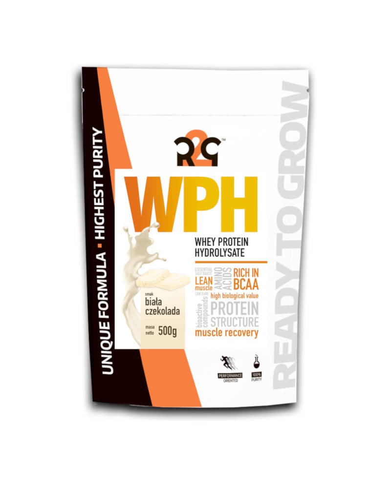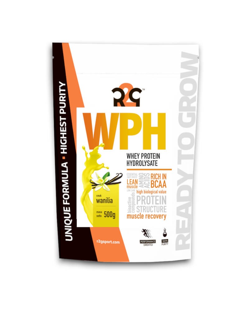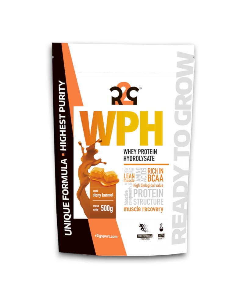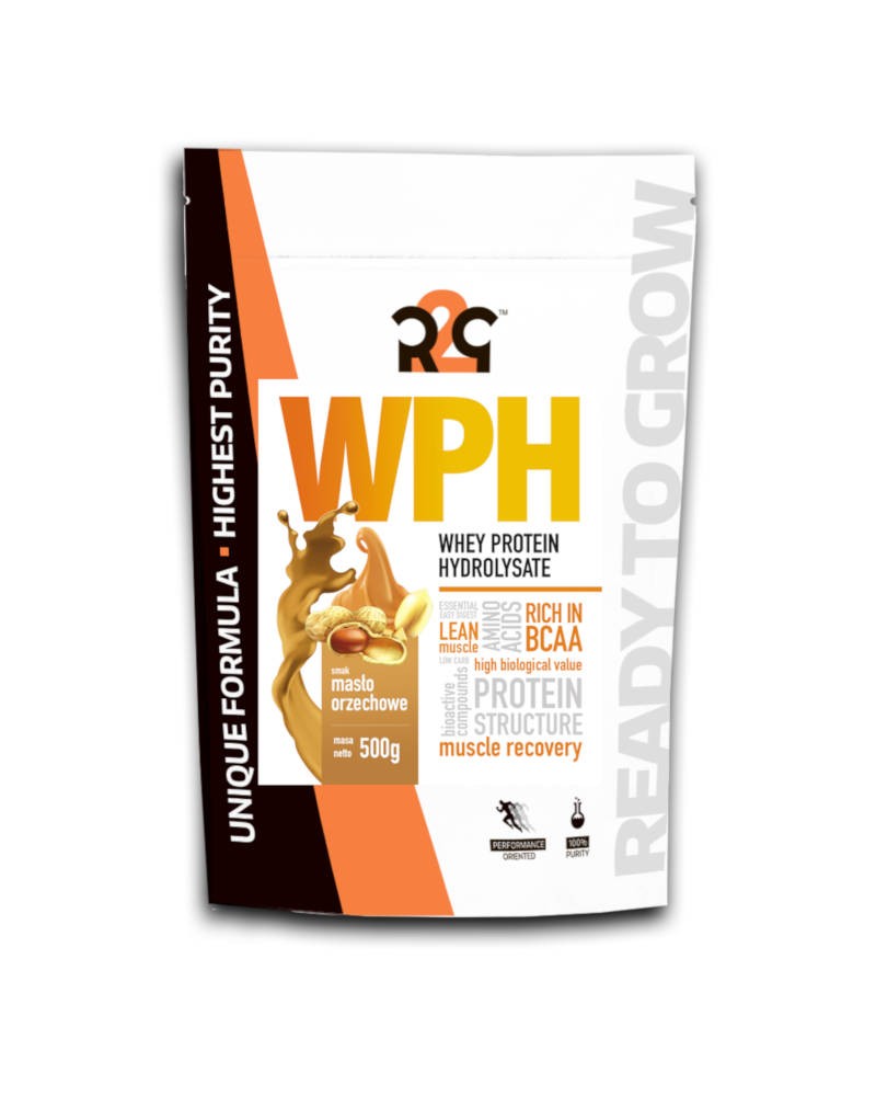 Cechy charakterystyczne: R2G WPH charakteryzuje się błyskawicznym wchłanianiem i bardzo dobrą przyswajalnością. Może zawierać jedynie śladowe ilości tłuszczu i żadnej laktozy. Dzięki swojej budowie strukturalnej (postać krótkich łańcuchów peptydowych) nie obciąża układu trawiennego. Nadaje się do spożywania przed, po, a także, co jest ewenementem wśród odżywek białkowych, w trakcie trwania wysiłku. Przykładowo można zastosować WPH po treningu siłowym, a przed aerobami. Podobnie jak inne frakcje białka serwatkowego odznacza się bardzo wysoką zawartością kluczowych aminokwasów egzogennych EAA, w tym rozgałęzionych BCAA.